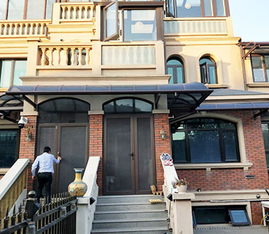 產(chǎn)品選用中國(guó)十大鋁型材企業(yè)——廣東偉業(yè)鋁材出品的高強(qiáng)度鋁合金材料,抗沖擊、不生銹、不老化,確保產(chǎn)品結(jié)實(shí)耐用,遮陽(yáng)板材選用原生進(jìn) 口德國(guó)拜耳耐力板,耐候性和抗擊力較強(qiáng),阻燃防老化,堅(jiān)固耐用。一螺絲、封蓋等配件采用304不銹鋼、高強(qiáng)度鋁合金等材料制作,細(xì)節(jié)同樣 經(jīng)得起考驗(yàn),讓客戶(hù)對(duì)產(chǎn)品無(wú)可挑剔。